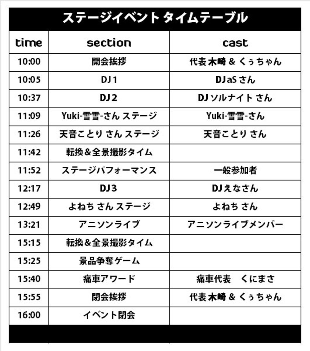 イベント内容は、痛車・コスプレ・ステージ・フリーマーケットを集めて開催する複合型イベントです。
